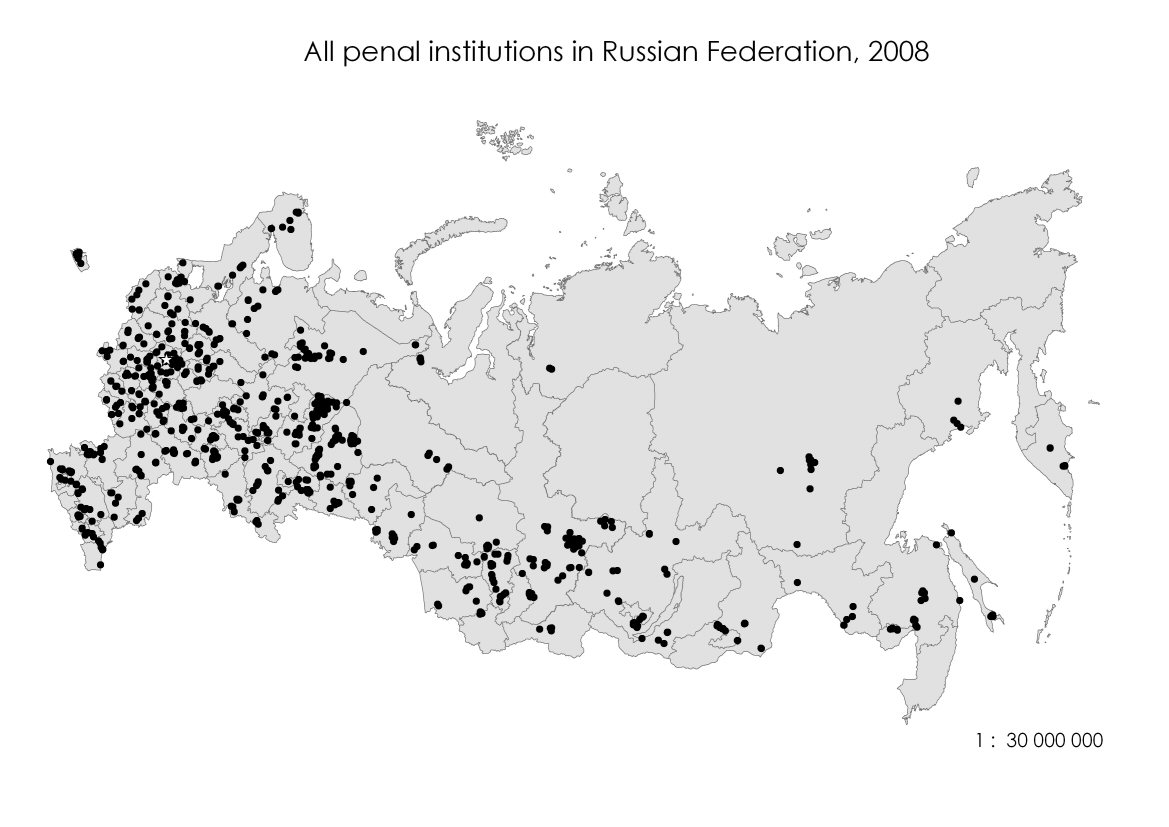 - Distribution of penal institutions in Krasnoyarskyi kray